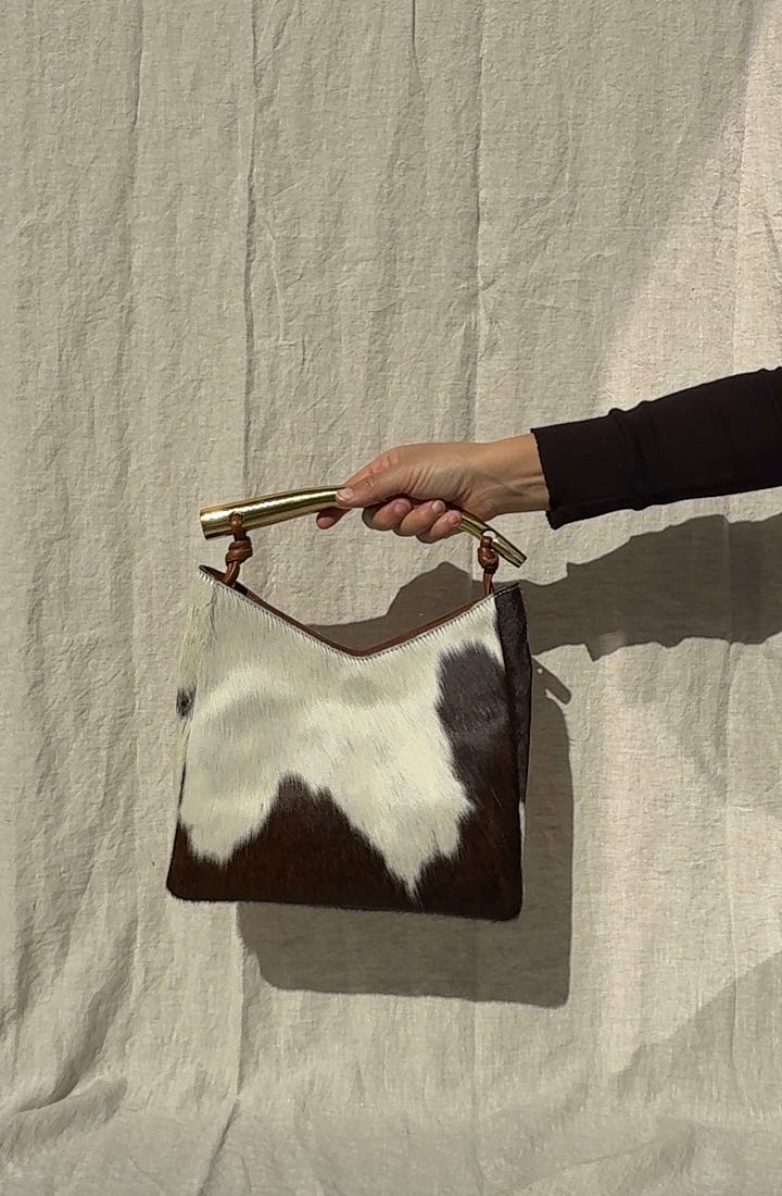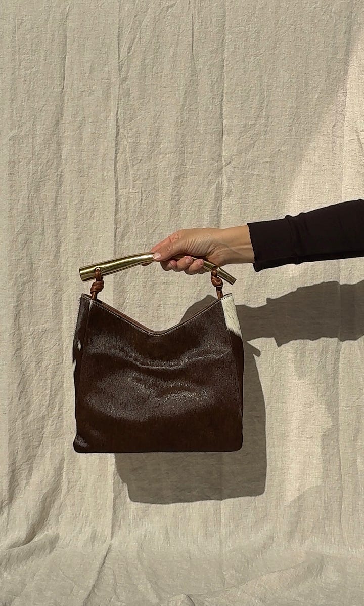 Also, we are down to the final few of our Mara Bag in Hair On Cow Hide (aka my favorite bag ever). Each is handcrafted and one-of-a-kind. Truly such a special bag — both striking and versatile.
