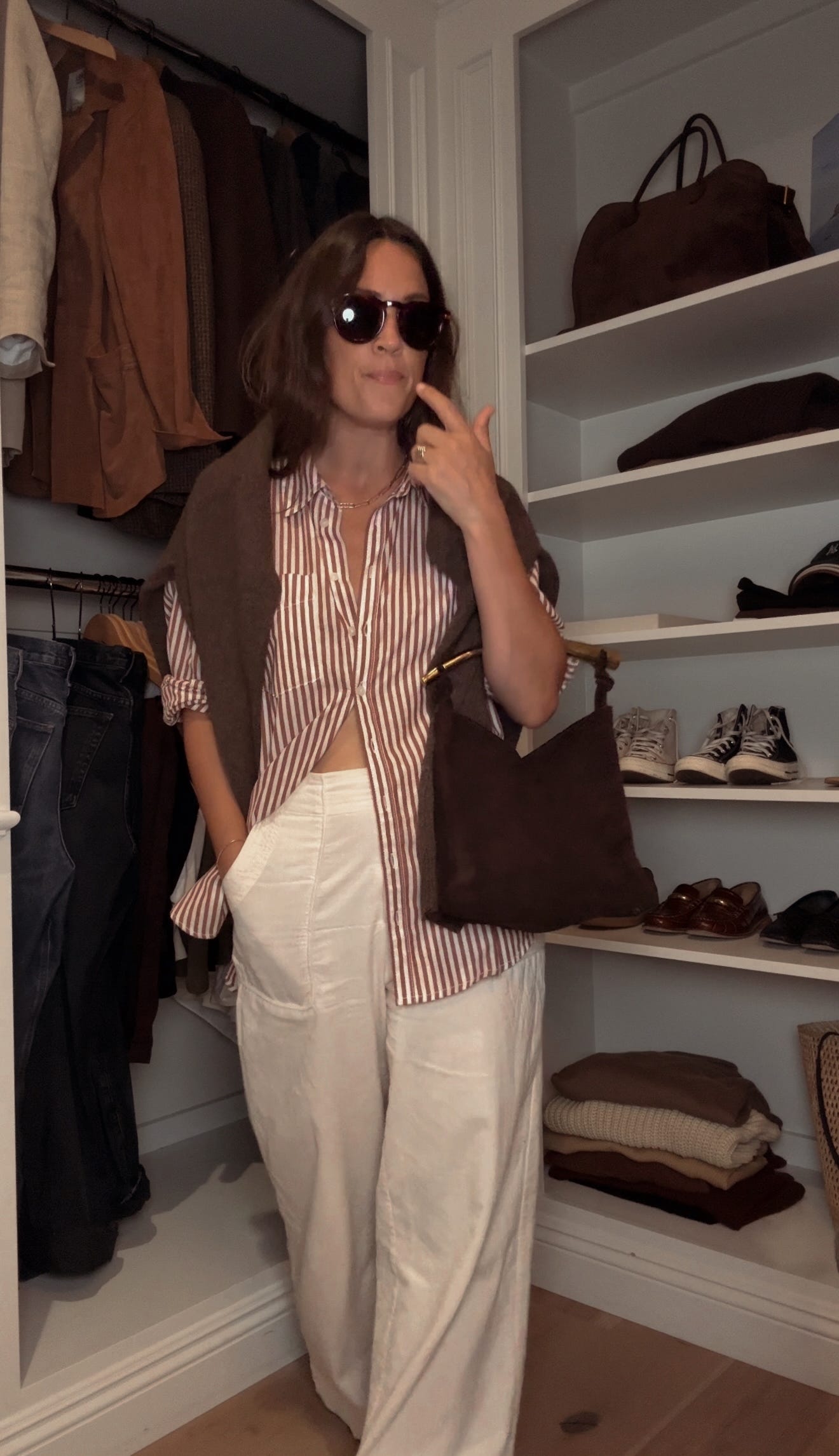 It’s no secret I am absolutely obsessed with this design. I love it for many reasons, the most practical being that it instantly elevates even the simplest outfits thanks to its interesting and sculptural details. Truly it is wearable art. Here are some of the ways I’ve styled my chocolate brown one to give you a little bit of fall styling inspo…